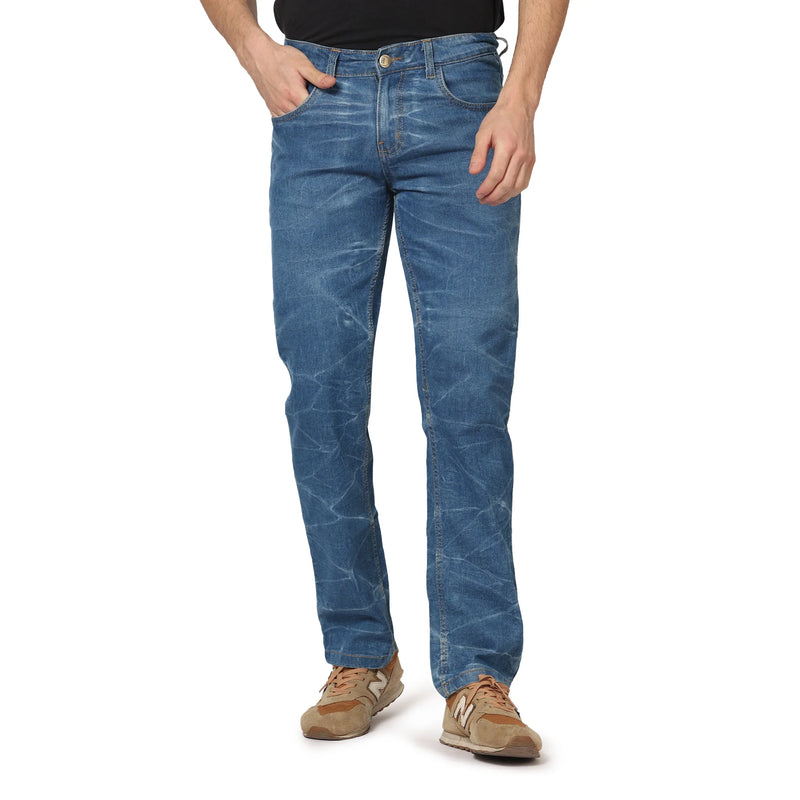 Blue Textured Color, Has Five pockets Jeans, Straight Fit.