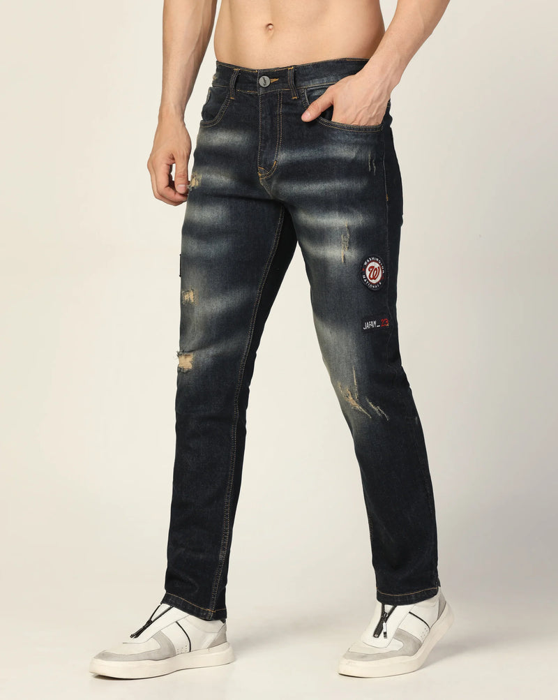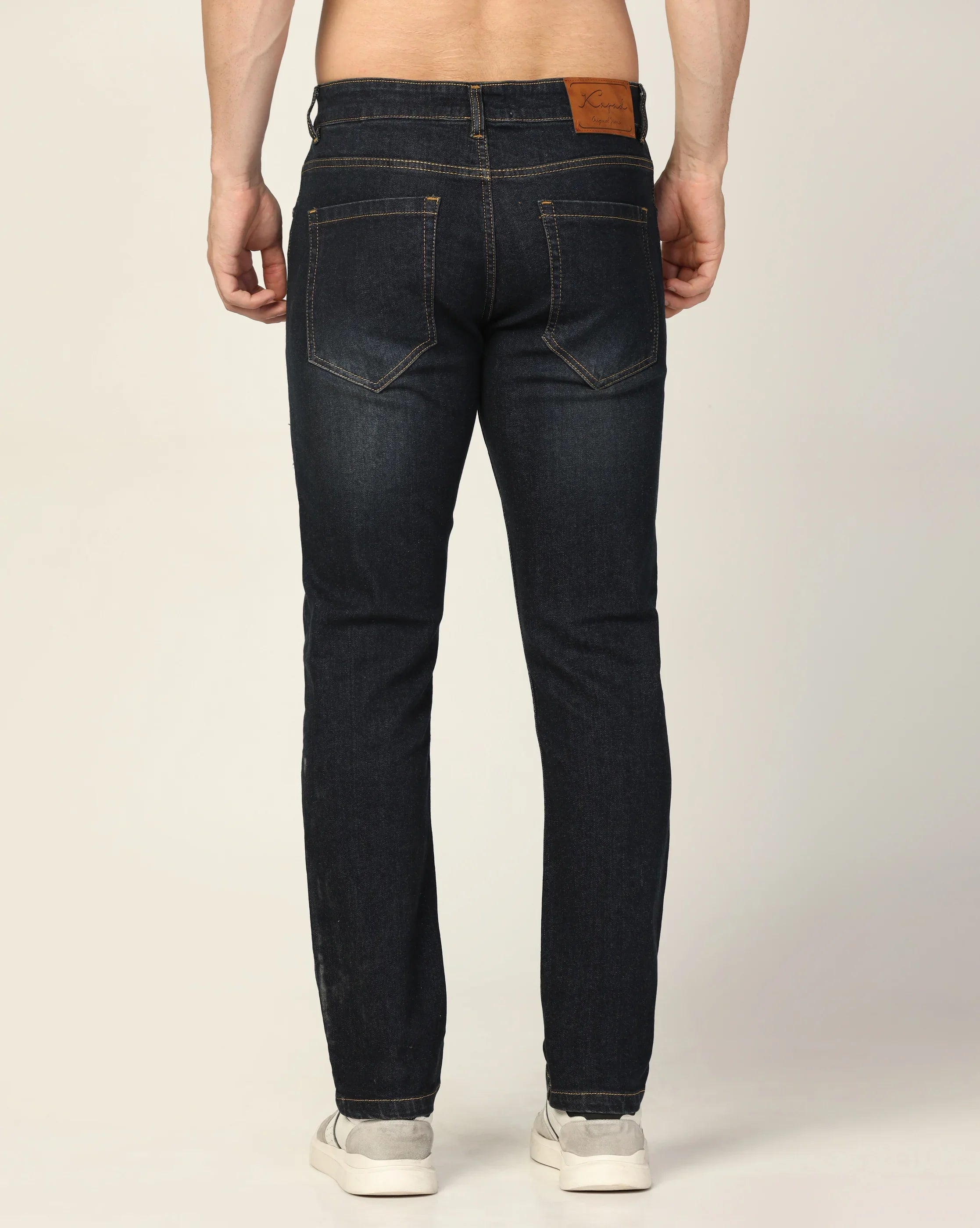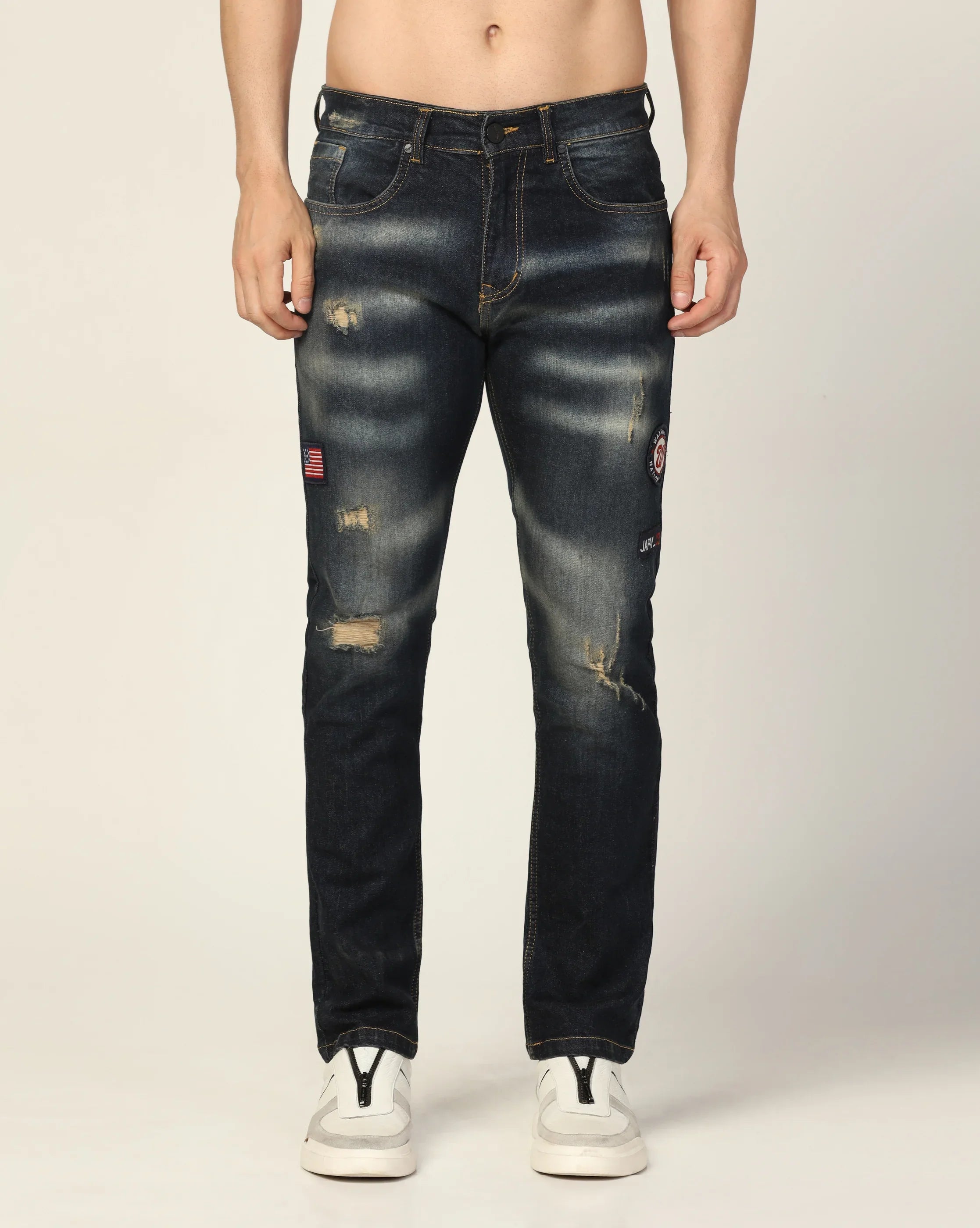Kagad Jeans Mens Regular Fit badges Two Tone Deep Ocean Blue Rugged Jeans - Style Code "KGDJN-403030